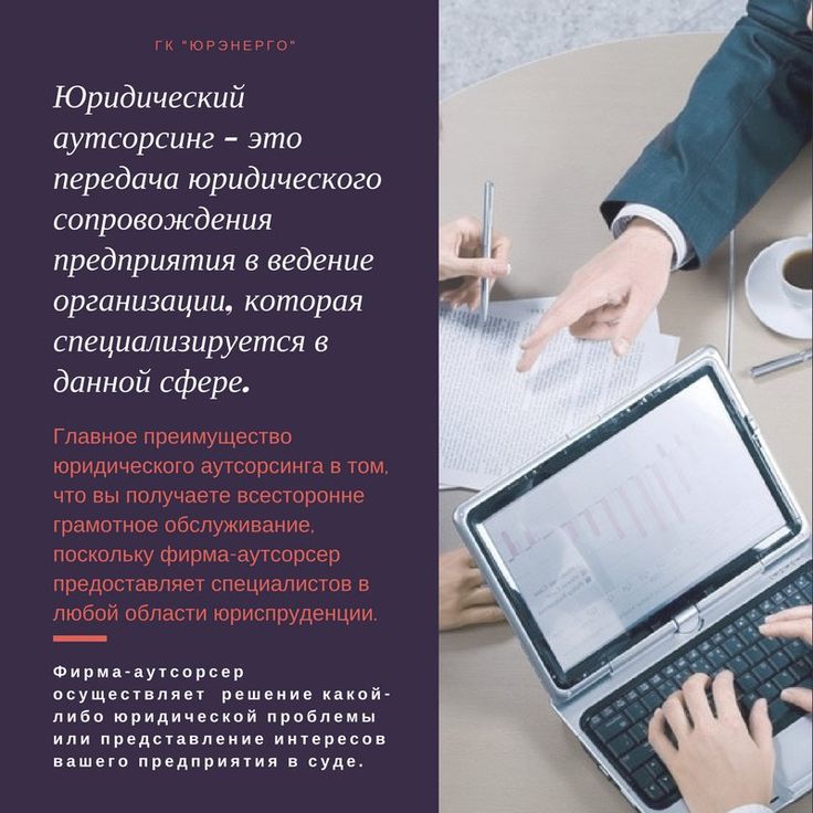 Юридический аутсорсинг представляет собой передачу правового обеспечения предприятия сторонней организации, которая полностью или частично возьмет на себя работу юриста.