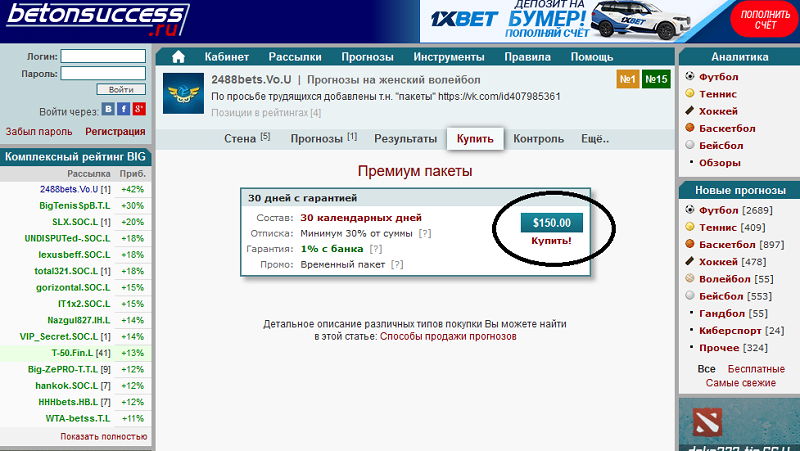 - Тарифы на платные рассылки капперов существенно ниже, чем у прогнозистов-одиночек или работающих в капперских конторах.