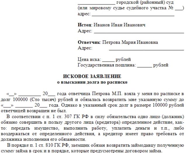 Здесь также следует оформить заявление с указанием всей информации о займе, своих реквизитов и заемщика, а также о принятых мерах для возвращения долга.