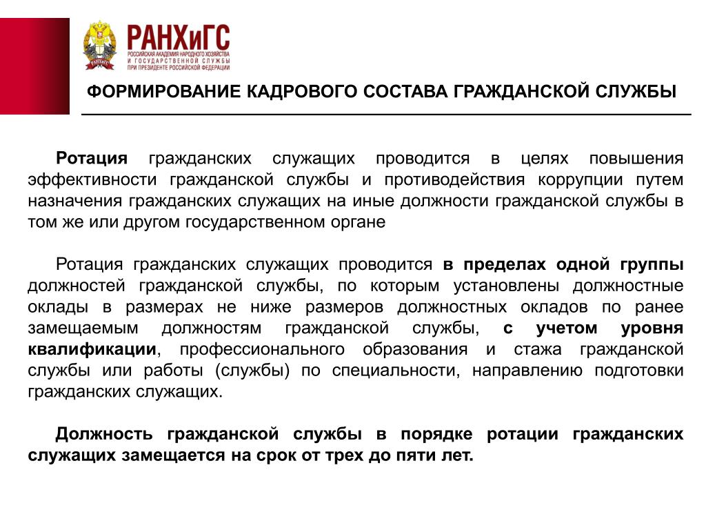 Должности, где вероятность коррупционных действий имеет высокий уровень, имеют ограничению по продолжительности службы с последующим переводом;