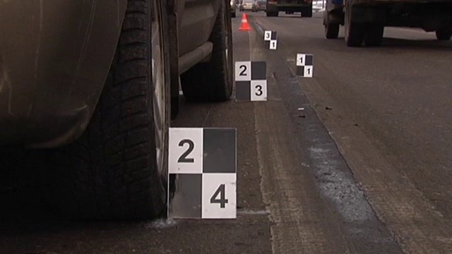 Следы шин колес автомобиля, возникающие при вращении или блокировки колеса, могут объяснить нам механизм происшествия, его динамику. Причем если на мягких грунтах мы получим отчетливый объемный след, который можно зафиксировать слепком, то на твердой асфальтовой поверхности мы увидим отслоения грязи или валики резины, образованные при торможении.