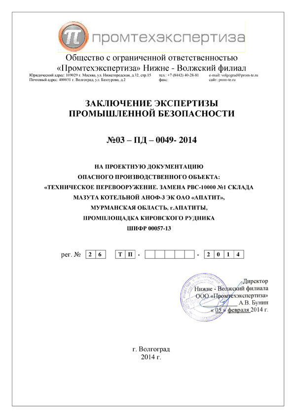внесения его в реестр заключений экспертизы промышленной безопасности.