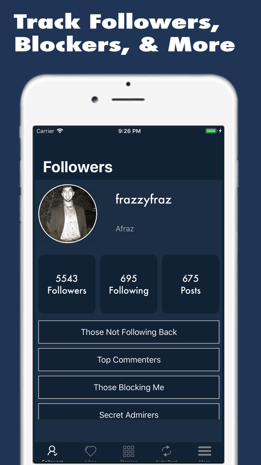 Track your Instagram followers, find out who is not following you back, who deleted comments or likes, viewed your story after 24 hours, rank your best friends and worst friends, who is your ghost friend, and much more!