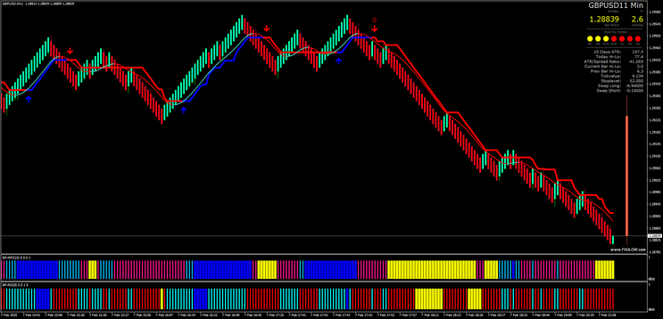 Если волатильность не очень высока, то ордера можно разместить на расстоянии 5 пунктов от текущей котировки, а если колебания цен более сильные, то вход в рынок осуществляйте в 10 пунктах от рыночной котировки. Рабочий таймфрейм — 1 минута или 5 минут.