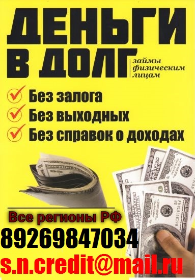 Граждане, которым не удалось получить финансовую помощь в банке, могут попробовать взять деньги в долг у частного лица через посредников. Люди, с которыми вы связываетесь по объявлению, не разглашают, кто именно дает вам нужную сумму.