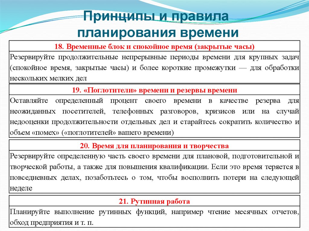 Специалисты по тайм-менеджменту рекомендуют придерживаться следующих правил: