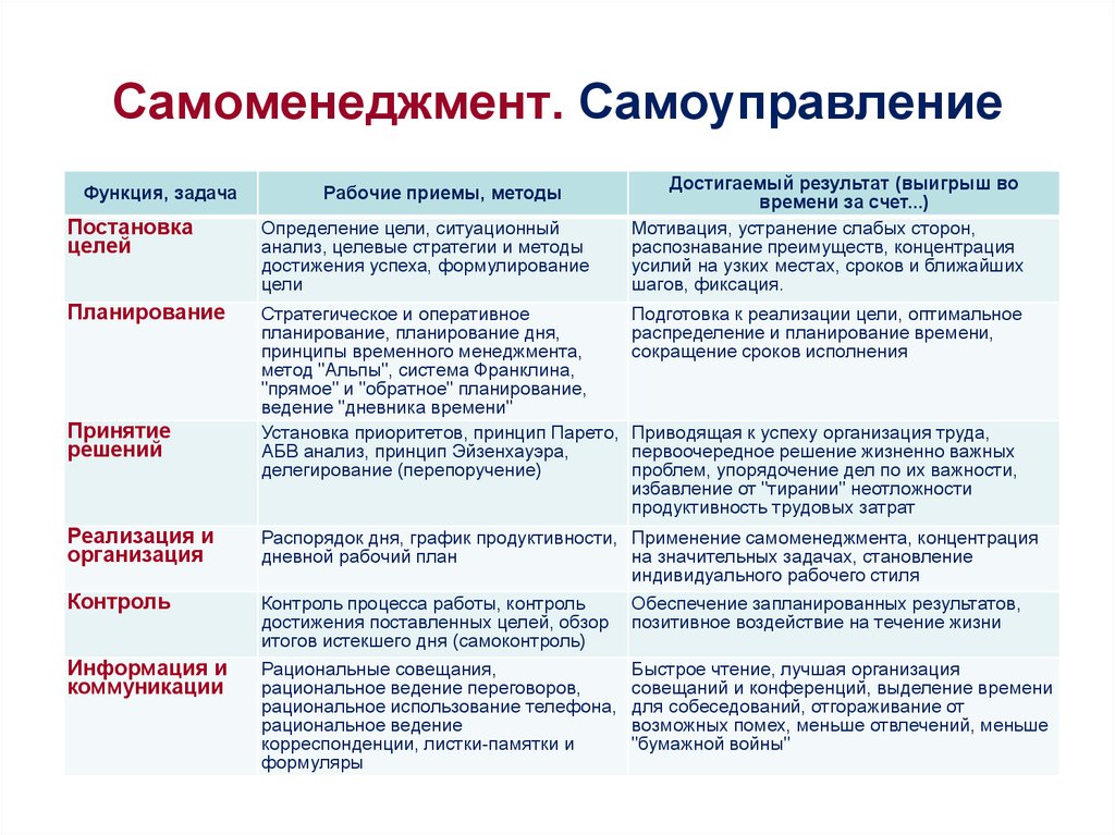 Основные принципы тайм-менеджмента формируются на основе четырех компонентов: