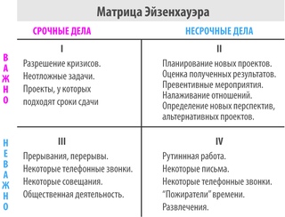 \Известный экономист, бывший президент Америки Дуайт Эйзенхауэр предложил разделять весь массив дел на 4 категории: