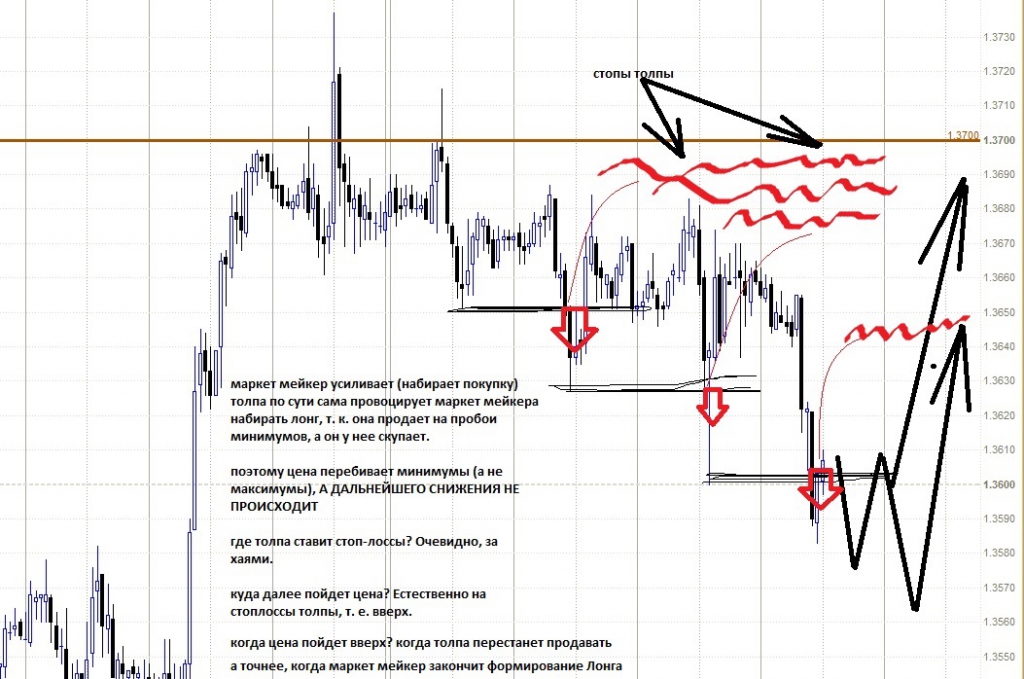 Здесь объясняется выбор точки входа, места стоп-лосса и места тейк-профита.