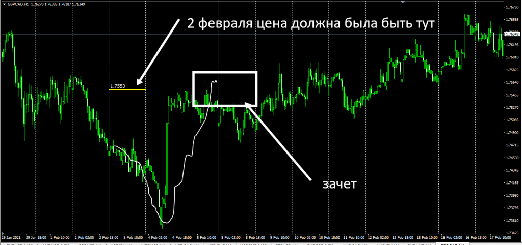 Например, для таймфрейма Н1 это будет цена в начале часа.