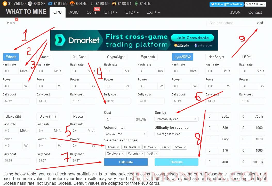 - Нужно изучить технические характеристики своего процессора. Сделать это можно, например, при помощи сервиса NiceHash. На платформе, в том числе, есть калькулятор доходности майнинга. Сайт помогает определить, сколько можно заработать с определенным CPU.