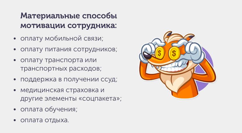 Π‘ΡΡΠ΅ΡΡΠ²ΡΡΡ Π²Π½Π΅ΡΠ½ΠΈΠ΅ ΠΌΠΎΡΠΈΠ²Π°ΡΠΎΡΡ, ΠΊΠΎΠ³Π΄Π° ΡΠ΅Π»ΠΎΠ²Π΅ΠΊ Ρ ΠΎΡΠ΅Ρ ΠΏΠΎΠ»ΡΡΠΈΡΡ Π²ΠΎΠ·Π½Π°Π³ΡΠ°ΠΆΠ΄Π΅Π½ΠΈΠ΅ Π·Π° ΡΠ²ΠΎΠΉ ΡΡΡΠ΄ ΠΈΠ»ΠΈ ΠΈΠ·Π±Π΅ΠΆΠ°ΡΡ Π½Π°ΠΊΠ°Π·Π°Π½ΠΈΡ. ΠΠ±ΡΡΠ½ΠΎ Π² ΠΊΠ°ΡΠ΅ΡΡΠ²Π΅ Π²Π½Π΅ΡΠ½ΠΈΡ ΠΌΠΎΡΠΈΠ²Π°ΡΠΎΡΠΎΠ² ΠΊΠΎΠΌΠΏΠ°Π½ΠΈΠΈ ΠΈΡΠΏΠΎΠ»ΡΠ·ΡΡΡ Π·Π°ΡΠΏΠ»Π°ΡΡ, Π»ΡΠ³ΠΎΡΡ, ΠΏΡΠΎΠ΄Π²ΠΈΠΆΠ΅Π½ΠΈΠ΅ ΠΏΠΎ ΠΊΠ°ΡΡΠ΅ΡΠ½ΠΎΠΉ Π»Π΅ΡΡΠ½ΠΈΡΠ΅ ΠΈ ΠΏΡΠ΅ΠΌΠΈΠΈ. ΠΡ ΠΏΡΠΈΠΌΠ΅Π½Π΅Π½ΠΈΠ΅ ΡΡΡΠ΅ΠΊΡΠΈΠ²Π½ΠΎ Π² ΠΎΡΠ½ΠΎΡΠ΅Π½ΠΈΠΈ ΠΌΠ½ΠΎΠ³ΠΈΡ Π»ΡΠ΄Π΅ΠΉ ΠΈ Π²ΠΎ ΠΌΠ½ΠΎΠ³ΠΈΡ ΡΠΈΡΡΠ°ΡΠΈΡΡ . ΠΠ°Π²Π΅ΡΠ½ΡΠΊΠ° Π²Ρ ΡΠ»ΡΡΠ°Π»ΠΈ ΠΎ Π½Π΅Π²Π΅ΡΠΎΡΡΠ½ΡΡ Π»ΡΠ³ΠΎΡΠ°Ρ ΠΈ ΠΏΡΠΈΠ²ΠΈΠ»Π΅Π³ΠΈΡΡ Π² Π½Π΅ΠΊΠΎΡΠΎΡΡΡ ΠΊΠΎΠΌΠΏΠ°Π½ΠΈΡΡ , Π² ΡΠΎΠΌ ΡΠΈΡΠ»Π΅ ΠΎ Π΄ΠΎΡΡΠ°Π²ΠΊΠ΅ ΠΈΠ· ΡΠ΅ΡΡΠΎΡΠ°Π½ΠΎΠ² ΠΏΡΠΈΠ³ΠΎΡΠΎΠ²Π»Π΅Π½Π½ΡΡ Π½Π° Π·Π°ΠΊΠ°Π· Π±Π»ΡΠ΄, Π±Π΅ΡΠΏΠ»Π°ΡΠ½ΠΎΠΉ Ρ ΠΈΠΌΡΠΈΡΡΠΊΠ΅, ΠΈΠ³ΡΠΎΠ²ΡΡ ΠΊΠΎΠΌΠ½Π°ΡΠ°Ρ , Π·ΠΎΠ½Π°Ρ ΠΎΡΠ΄ΡΡ Π°. ΠΡΠ΅ ΡΡΠΎ Π΄Π΅Π»Π°Π΅ΡΡΡ Π΄Π»Ρ ΡΠ΄Π΅ΡΠΆΠ°Π½ΠΈΡ ΠΏΠ΅ΡΡΠΎΠ½Π°Π»Π° ΠΈ Π΄ΠΎΡΡΠΈΠΆΠ΅Π½ΠΈΡ ΡΡΠΏΠ΅Ρ Π° Π² ΠΊΠΎΠ½ΠΊΡΡΠ΅Π½ΡΠ½ΠΎΠΉ Π±ΠΎΡΡΠ±Π΅.