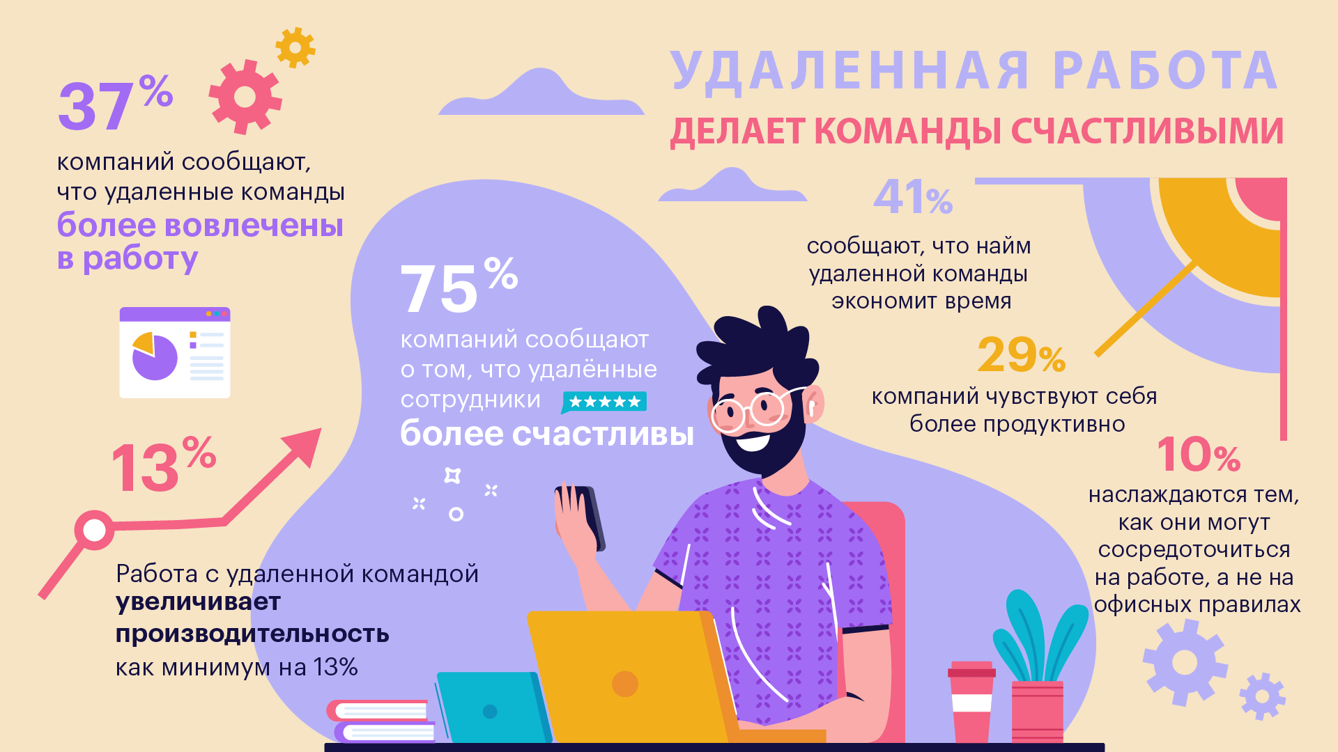 - Распределенная рабочая сила: вы и все, с кем вы работаете, работаете удаленно