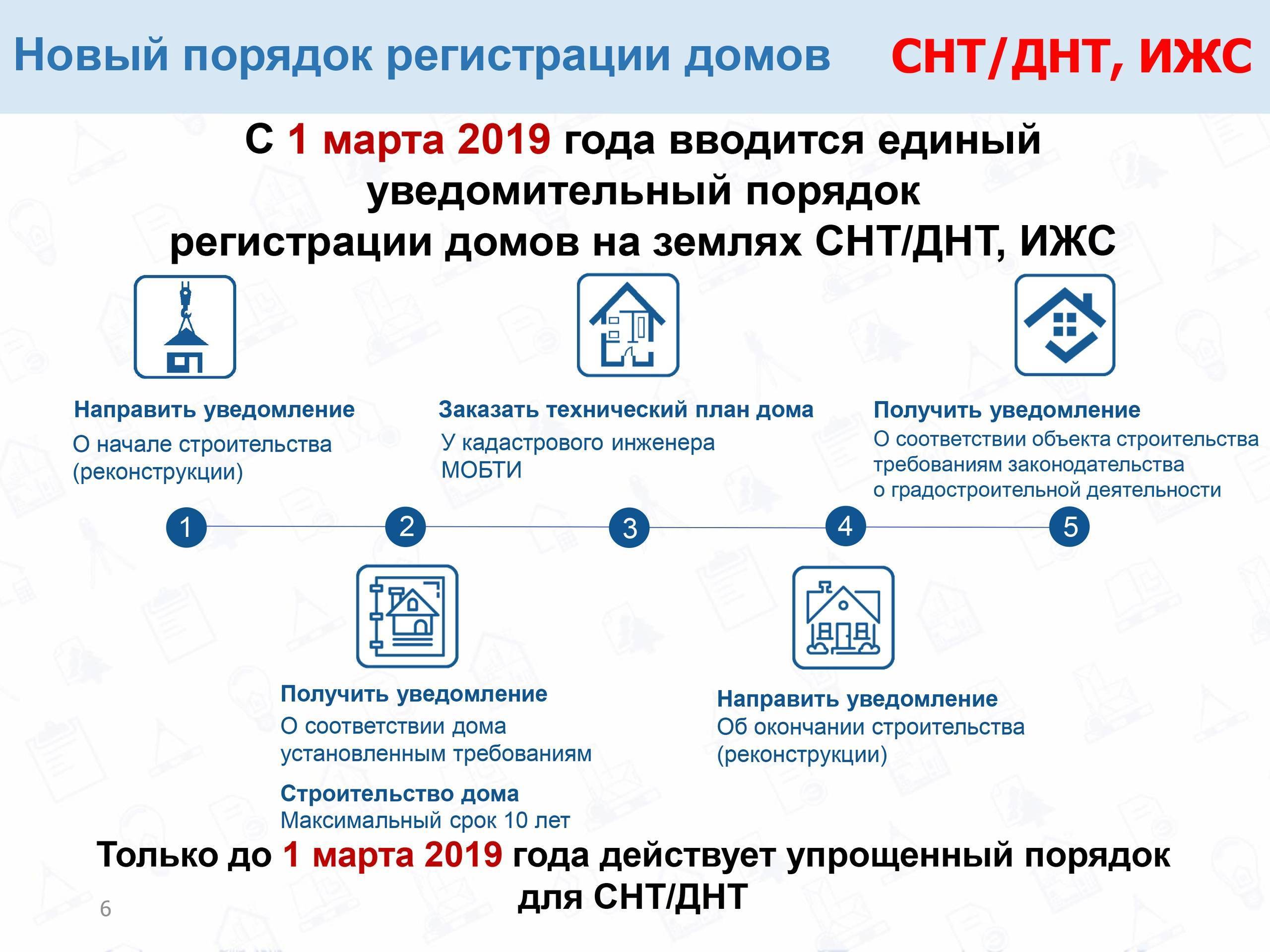 - Подача уведомления о начале и об окончании строительства