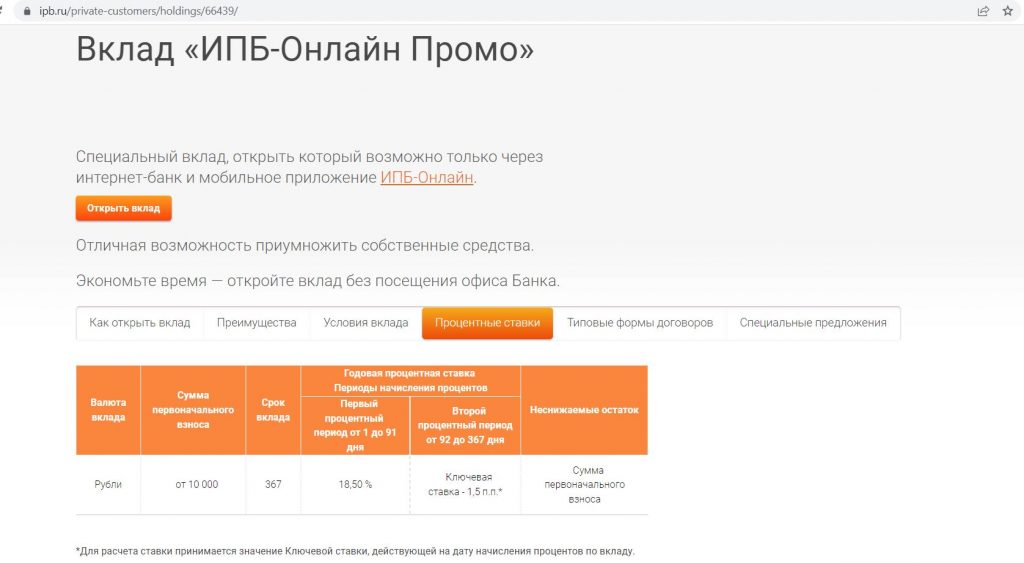 Повышенная ставка для новых клиентов в первые два месяца Ставкадо 9. Срокдо 2190 дней Суммаот 1 Лиц. № 354 Открыть счет Преимущества Ставкадо 9.00%Преимущества Срокдо 2190 дней Суммаот 1 Лиц. № 354Преимущества Ставкадо 7.72%Преимущества Срокдо 1095 дней Суммаот 15 000 Лиц. № 354Преимущества Ставкадо 7.00%Преимущества Срокдо 1095 дней Суммаот 50 000 Лиц. № 354Преимущества Ставкадо 6.00%Преимущества Срокдо 2190 дней Суммаот 1 Лиц. № 354Преимущества Ставкадо 5.30%Преимущества Срокдо 367 дней Суммаот 50 000 Лиц. № 354Преимущества Ставка4.00%Преимущества Срокдо 2190 дней Суммаот 1 Лиц. № 354Преимущества | |||||
