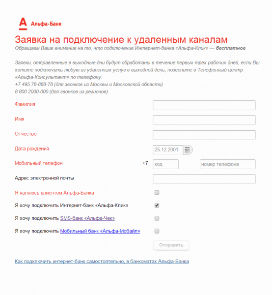 Третий вариант подключения подходит клиентам уже зарегистрированным в системе интернет-банкинга.