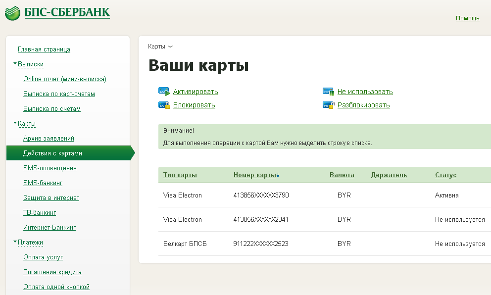 - Вариант первый – начальные регистрационные данные можно получить в виде СМС-сообщений на привязанный к карте мобильный номер;
