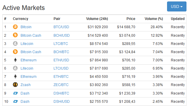 BTC долларов США | 19179 | -57 | -0,30% | -61,05% | окт/03 | |
