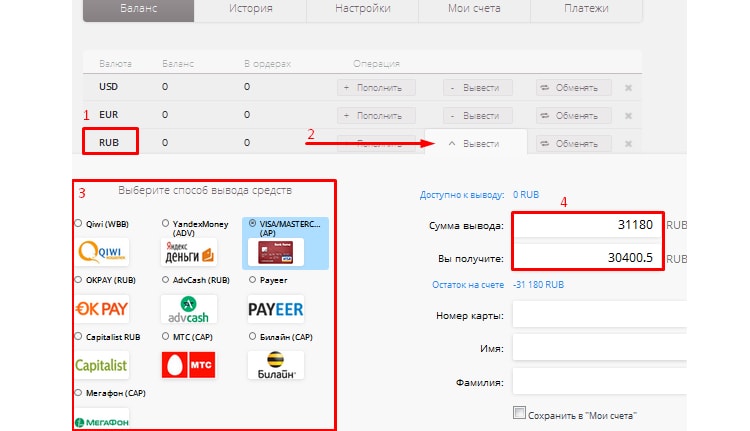 Как правило, доступен вывод на карты, Qiwi, Payeer или AdvCash.