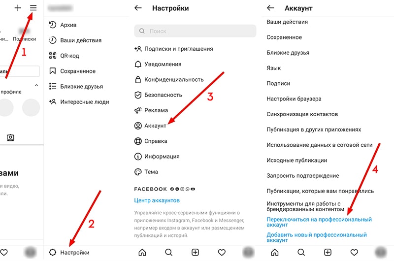 Как включить профессиональный аккаунт:
