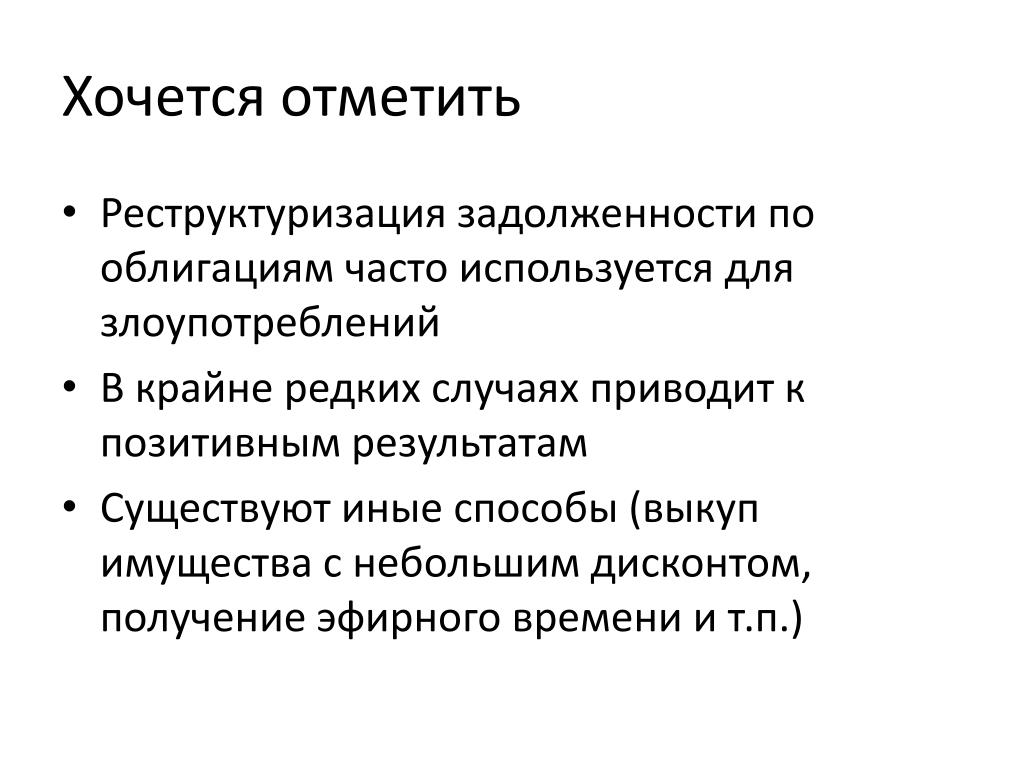 Подробнее могут попасть на баланс кредиторов. - Нет гарантий, что бизнес будет работать бесперебойно и будут производиться своевременные платежи даже после реструктуризации долга