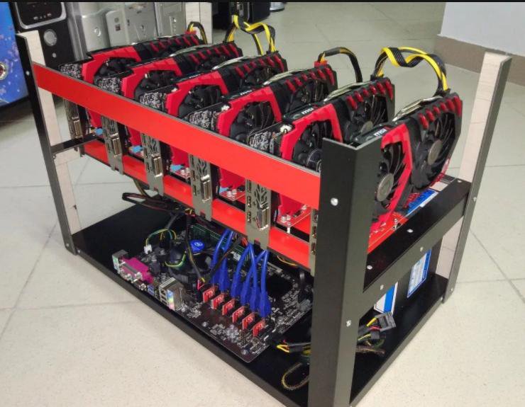 Разберем на примере домашней майнинговой фермы, в которой используются мощности видеокарт — такие подходят, например, для добычи эфира (ETH), поскольку самый высокий хэшрейт вычислений достигается именно на графических чипах.