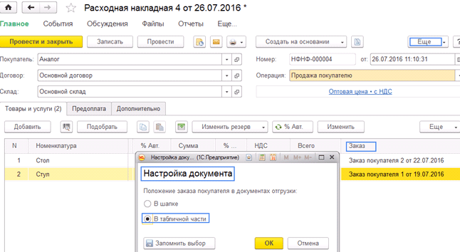 После выбора склада подгружаем таблицу с данными о товарах к поставке. В графе «Договор» по умолчанию стоит «Оферта», ничего менять не нужно.