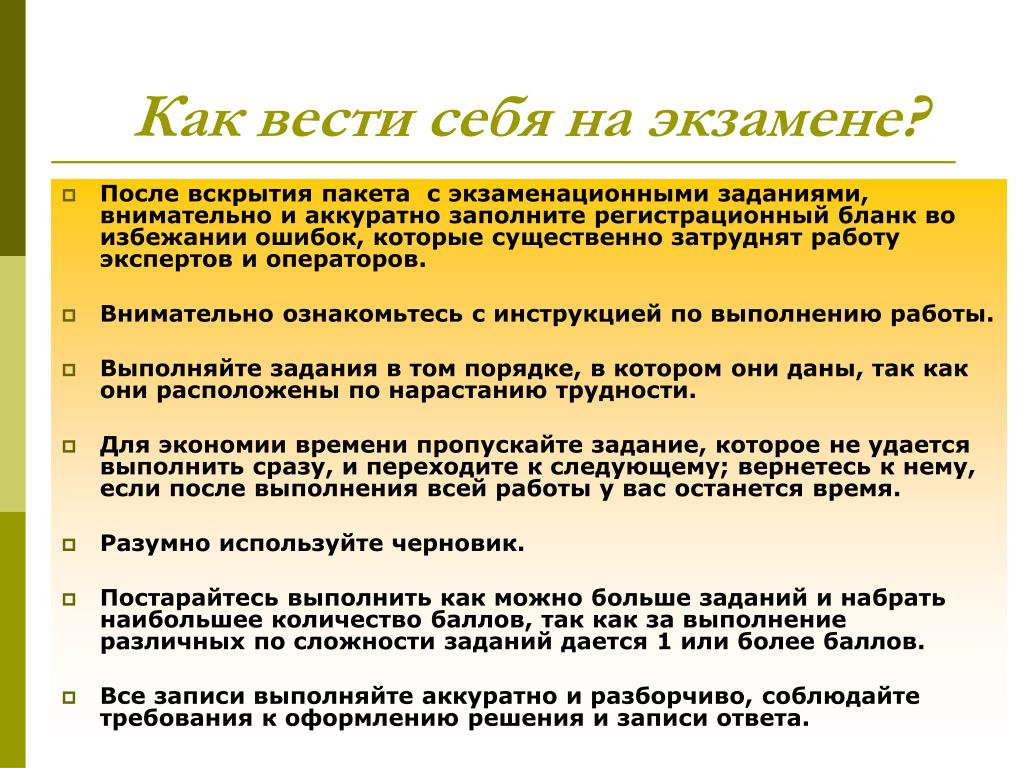 Лучше всего приготовить ее с вечера и не оставлять на последний момент, чтобы в спешке не забыть что-нибудь. Вообще, во избежание лишних переживаний перед встречей с работодателем стоит исключить все раздражающие и уменьшающие собственную уверенность факторы, такие как: болтающаяся пуговица, незастегивающаяся молния, порванный шнурок на ботинке или отсутствие набойки на каблуке… Все следует заранее привести в порядок, чтобы не волноваться на собеседовании. Но ни в коем случае нельзя принимать успокоительное или транквилизаторы, так как большинство из них угнетает умственную деятельность и мыслительные процессы, может повредить речи и скорости реакции. Не стоит «для храбрости» подкрепляться алкоголем — смелости это вам не придаст, а вот запах наверняка оттолкнет окружающих, что не будет способствовать повышению вашей репутации. Кстати говоря, именно на такие «мелочи», как запах изо рта, состояние волос, кожи, ногтей, стоит обратить особенное внимание, так как именно они могут перечеркнуть все позитивные моменты и свести на нет ваши попытки понравиться собеседнику.