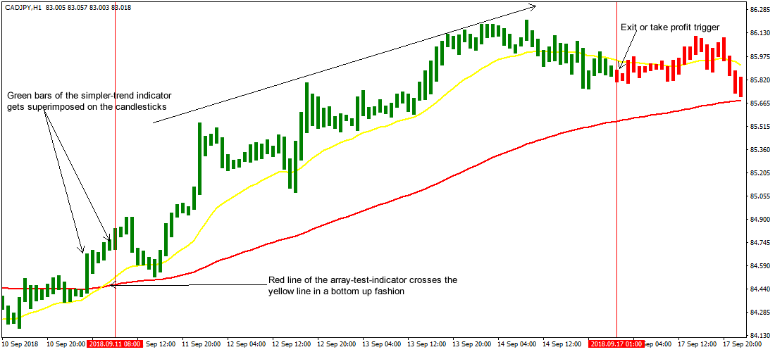 Если рыночная цена выше самого высокого максимума в указанный период времени, трейдеру следует покупать. Если рыночная цена ниже самого низкого минимума в указанный период времени, трейдеру следует продавать.
