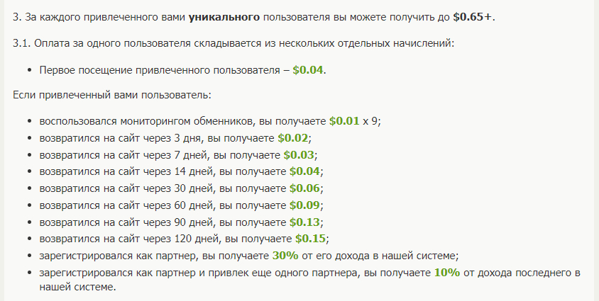 Партнер получает на счет эквивалент $44 с первых пяти оплат. А пользователь, который регистрируется по ссылке, получает скидку в таком же размере на первые пять платежей.