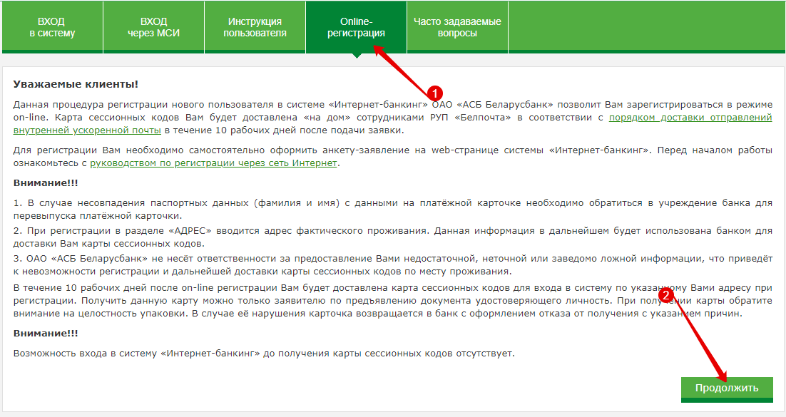 - Зайдите на официальный сайт «Беларусбанка» и выберите пункт «Онлайн-регистрация».