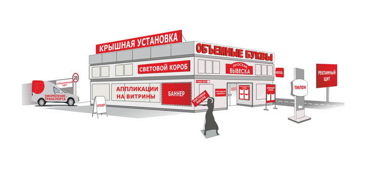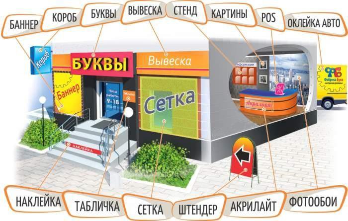 - Использование общественных мест, таких как улицы или торговые центры, в качестве средства рекламы