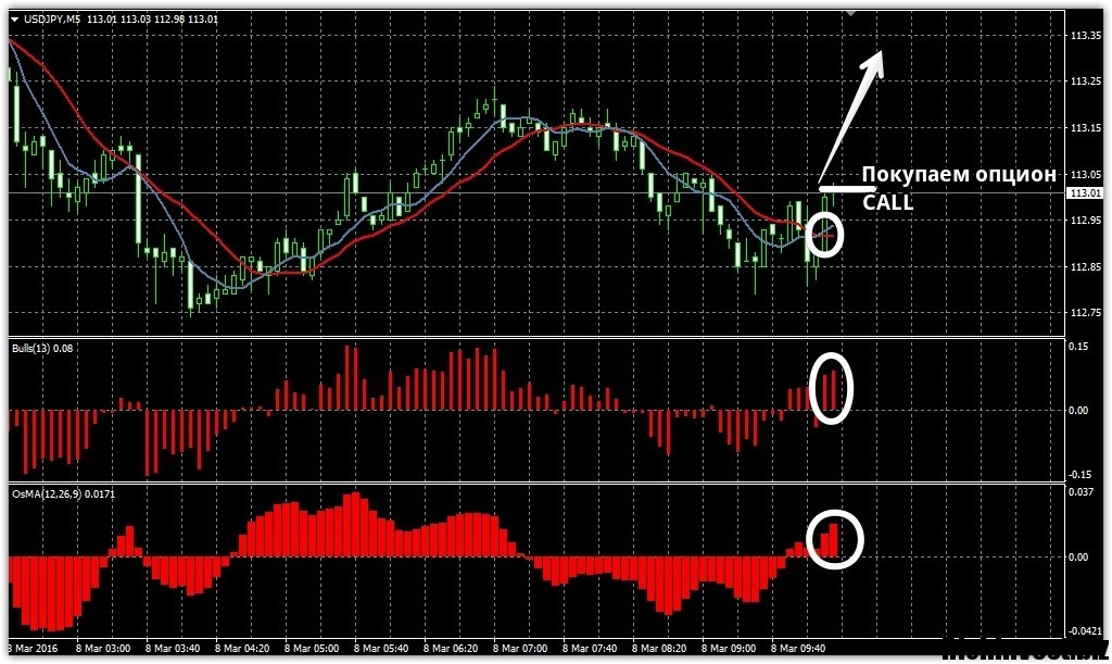 Вход в рынок рекомендуется делать с того момента, как сформирован четвертый по счету бар выше нулевого уровня.