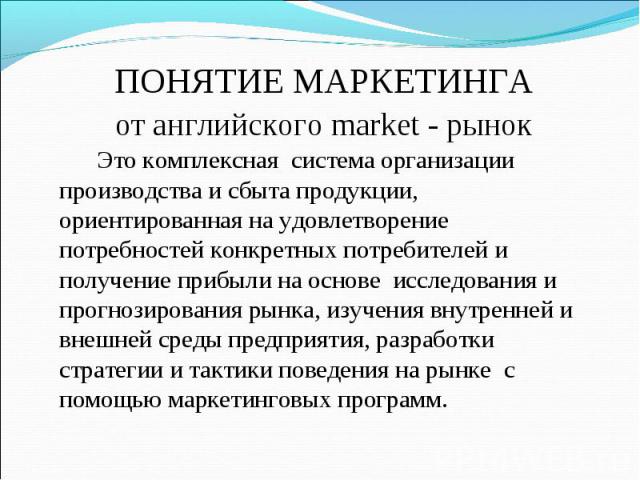 Под маркетингом понимается такой вид