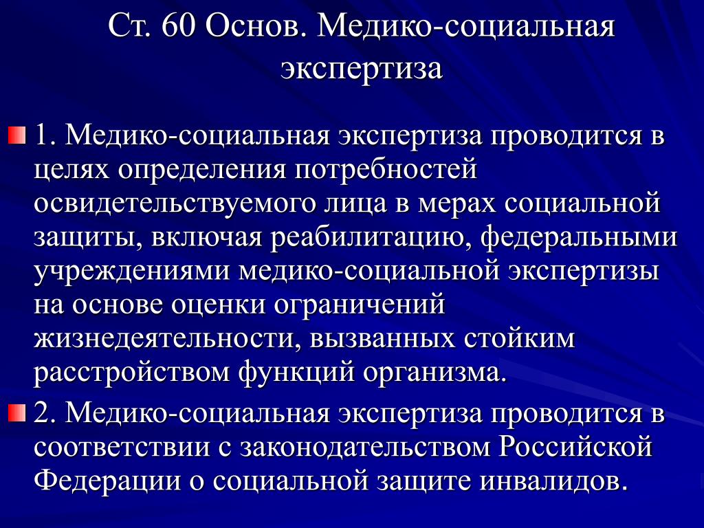 - Орган, осуществляющий пенсионное обеспечение, а также орган социальной защиты населения вправе направлять на медико-социальную экспертизу гражданина, имеющего признаки ограничения жизнедеятельности и нуждающегося в социальной защите, при наличии у него медицинских документов, подтверждающих нарушения функций организма вследствие заболеваний, последствий травм или дефектов.