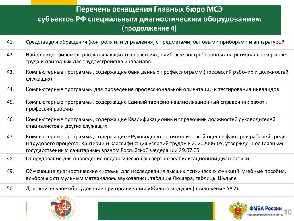 Программа дополнительного обследования может предусматривать проведение необходимого дополнительного обследования в медицинской, реабилитационной организации, получение заключения главного бюро или Федерального бюро, запрос необходимых сведений, проведение обследования условий и характера профессиональной деятельности, социально-бытового положения гражданина и другие мероприятия.