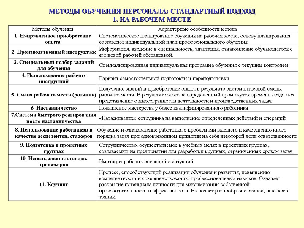 ΠΠ΅ΡΠΎΠ΄Ρ ΠΈ Π²ΠΈΠ΄Ρ ΠΎΠ±ΡΡΠ΅Π½ΠΈΡ ΠΏΠ΅ΡΡΠΎΠ½Π°Π»Π° Π² ΠΎΡΠ³Π°Π½ΠΈΠ·Π°ΡΠΈΠΈ Π½Π° ΡΠ°Π±ΠΎΡΠ΅ΠΌ ΠΌΠ΅ΡΡΠ΅