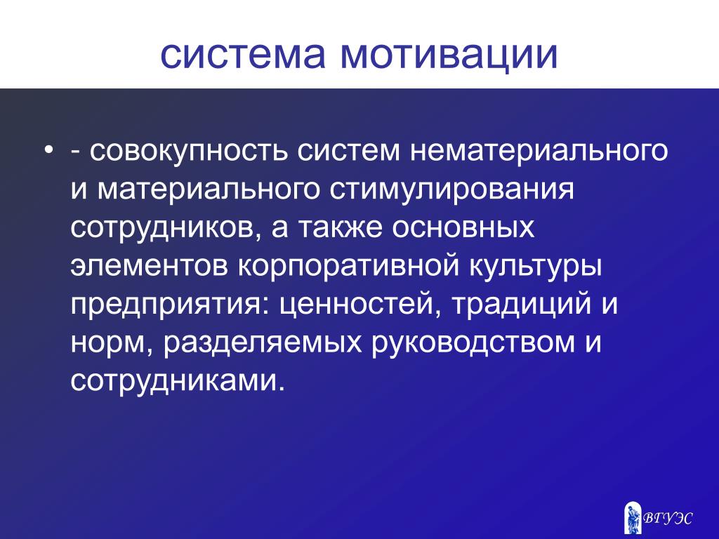 Материальная мотивация работников основана на системе материального вознаграждения. Существует несколько видов стимулов, влияющих на повышение производительности труда: