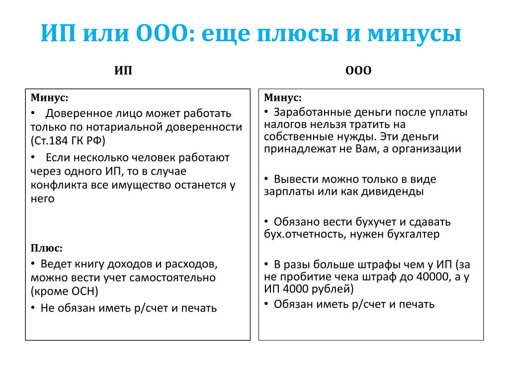 В то же время, статус ИП позволяет применять более гибкую систему налогообложения и использовать упрощенную форму отчетности. В таких ситуациях можно разделить бизнес путем введения дополнительного хозяйствующего субъекта, обладающего более широкими возможностями.