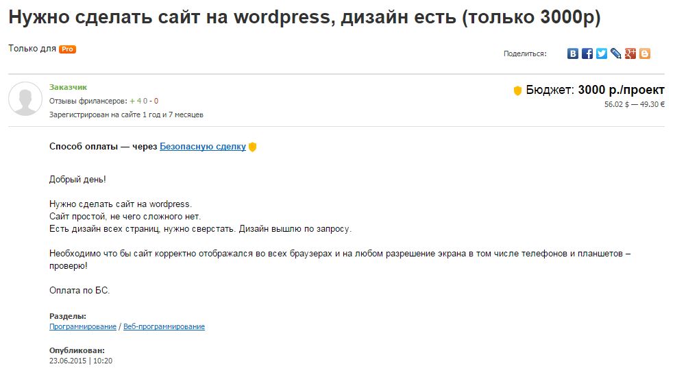 Доброго времени. Работа «под ключ» (с оптимизацией включительно). Есть опыт. 250 у.е. до 20 дней. Freelancehunt Обращайтесь,буду рад сотрудничать! skype: vlad.inc1 e-mail: [email protected] С Уважением, Владислав