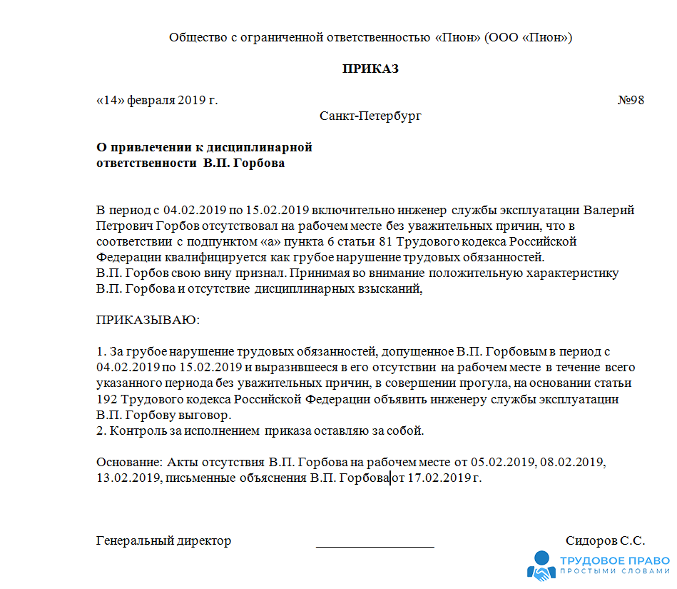 - копии приказа о наложении штрафа, выговоре;