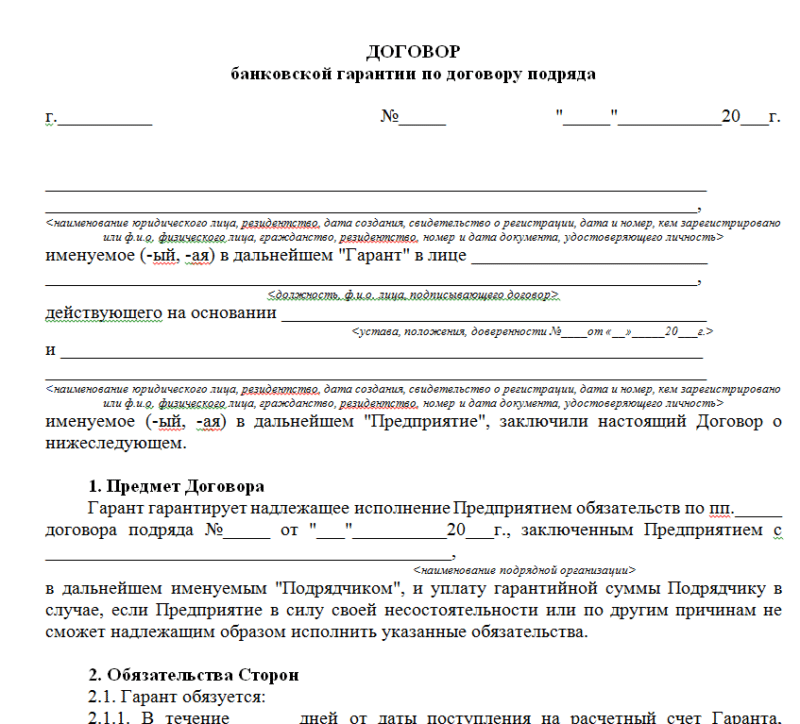 как заполнить форму банковской гарантии: Заполните и подпишите онлайн