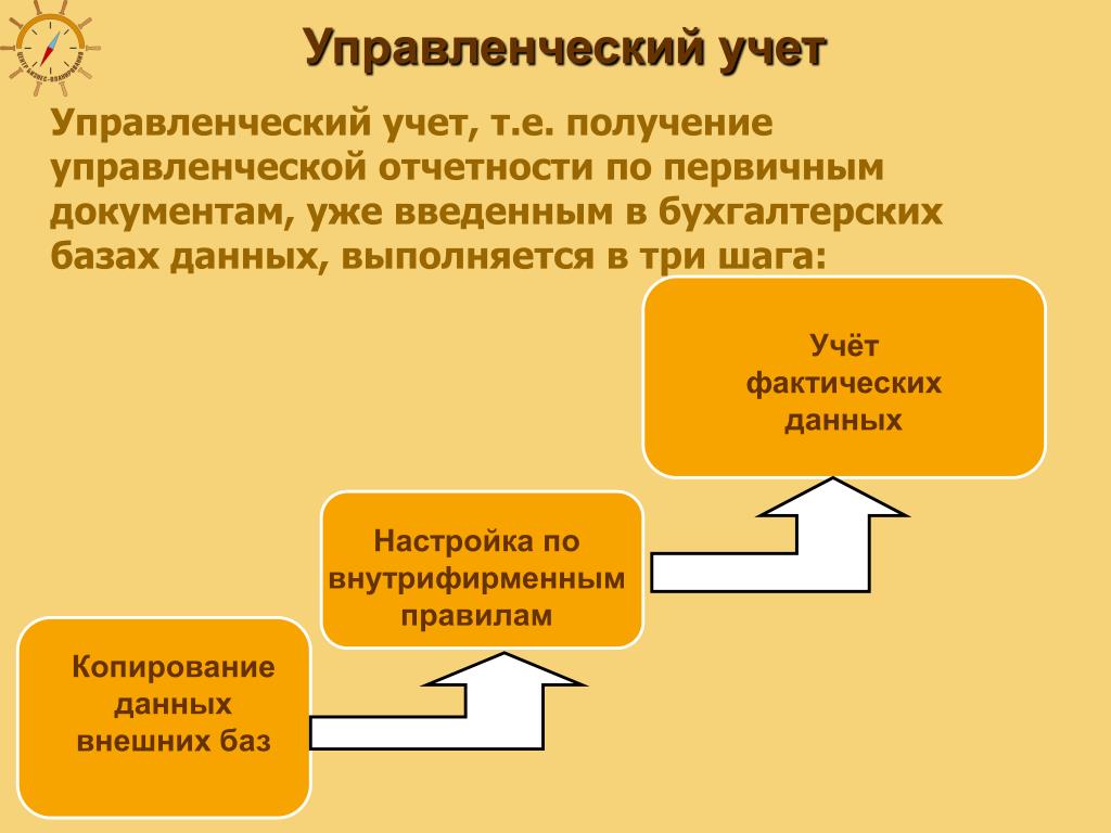 Эффективный управленческий учет лежит в основе успеха компании. Это своеобразная приборная панель перед штурвалом пилота, сообщающая данные о состоянии самолета в режиме реального времени. Принципы управленческого учета помогают соединить цели предприятия с методами достижения, поэтому могут касаться: персонала, управления результативностью организации во внешней и внутренней среде, практики управленческого учета.
