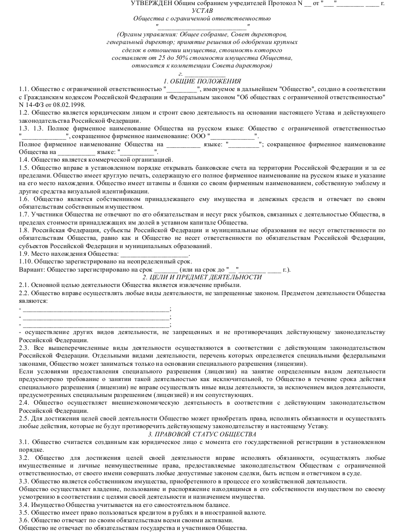 Устав ООО включает все ключевые компоненты компании, такие как название, адрес, список владельцев (также называемых «участниками») и местонахождение бизнеса.