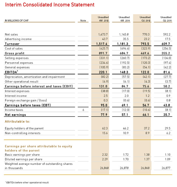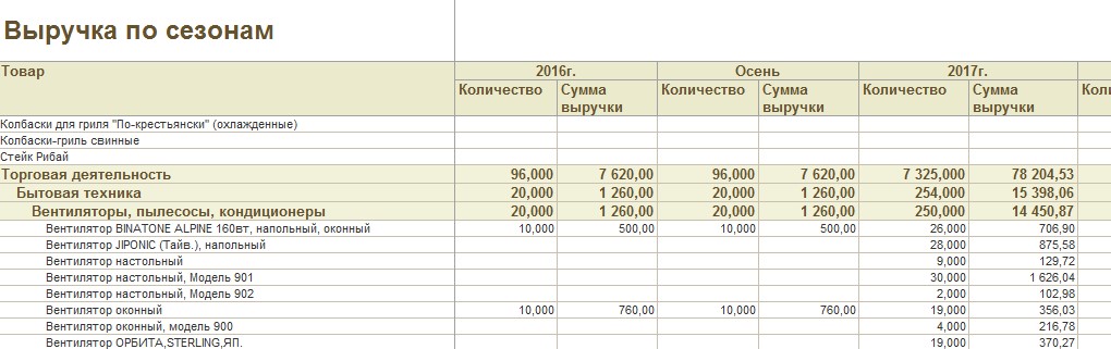 Типовой вид включает статьи, отображающие валовые и чистые доходы (с учетом скидок), а также расходы: