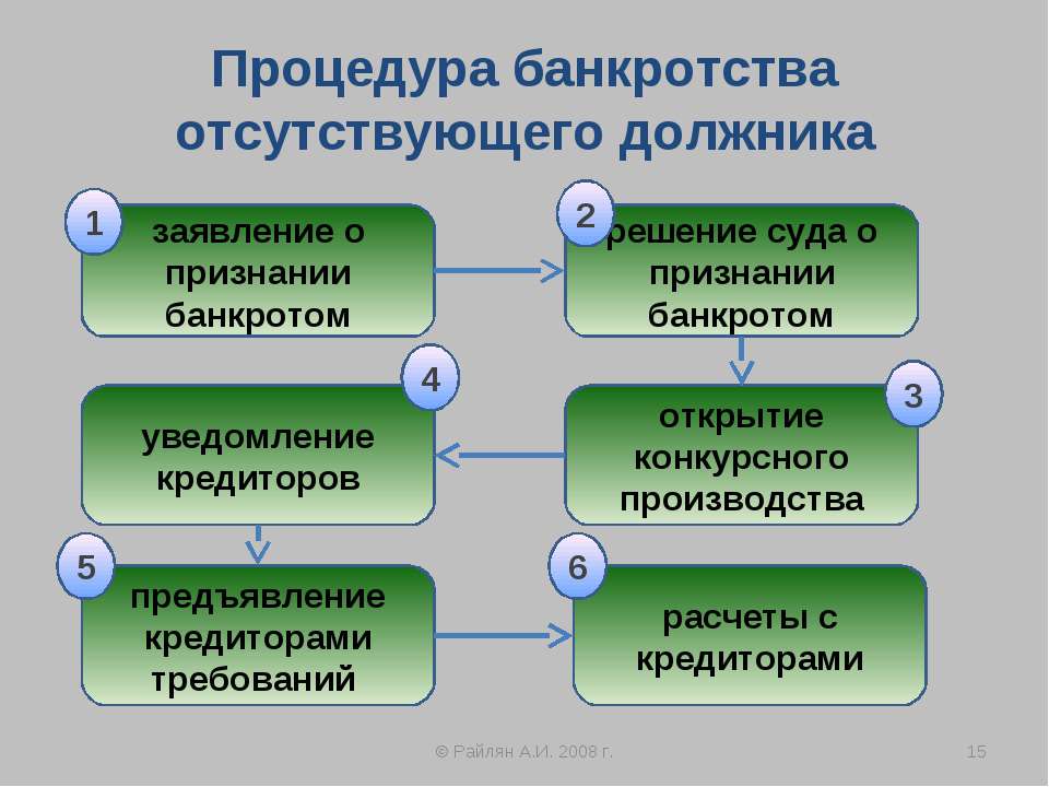 Банкротство — это юридический процесс, с помощью которого люди и предприятия могут получить новый финансовый старт, когда они находятся в таком финансовом затруднении, что не могут погасить свои долги в соответствии с договоренностью. Новый старт достигается путем устранения всех или части существующих долгов и/или продления ежемесячных платежей под защитой и надзором суда.