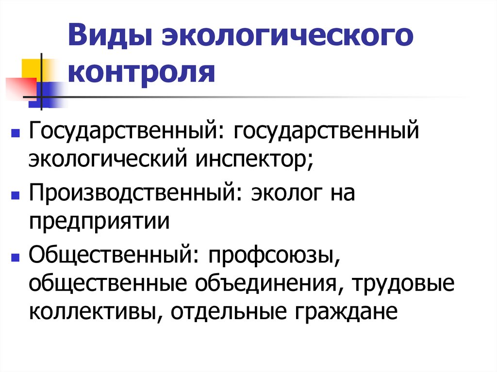 - контроль соблюдения установленных экологических правил, нормативов и стандартов производственной деятельности;