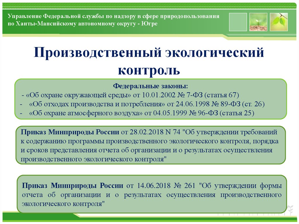 Главная цель производственного экологического контроля – подтверждение ведения деятельности предприятия в рамках экологического законодательства.