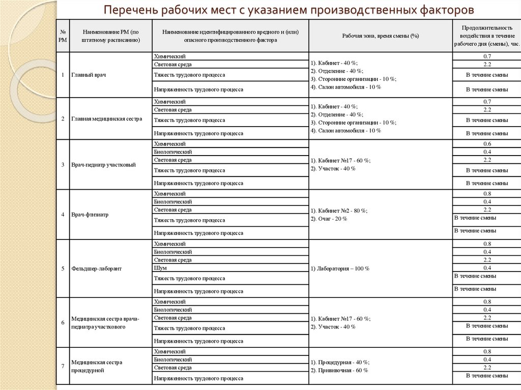 - Перечень химических веществ и производственных факторов, которые представляют потенциальную опасность для человека. Для них должны быть указаны объём и периодичность лабораторных исследований.