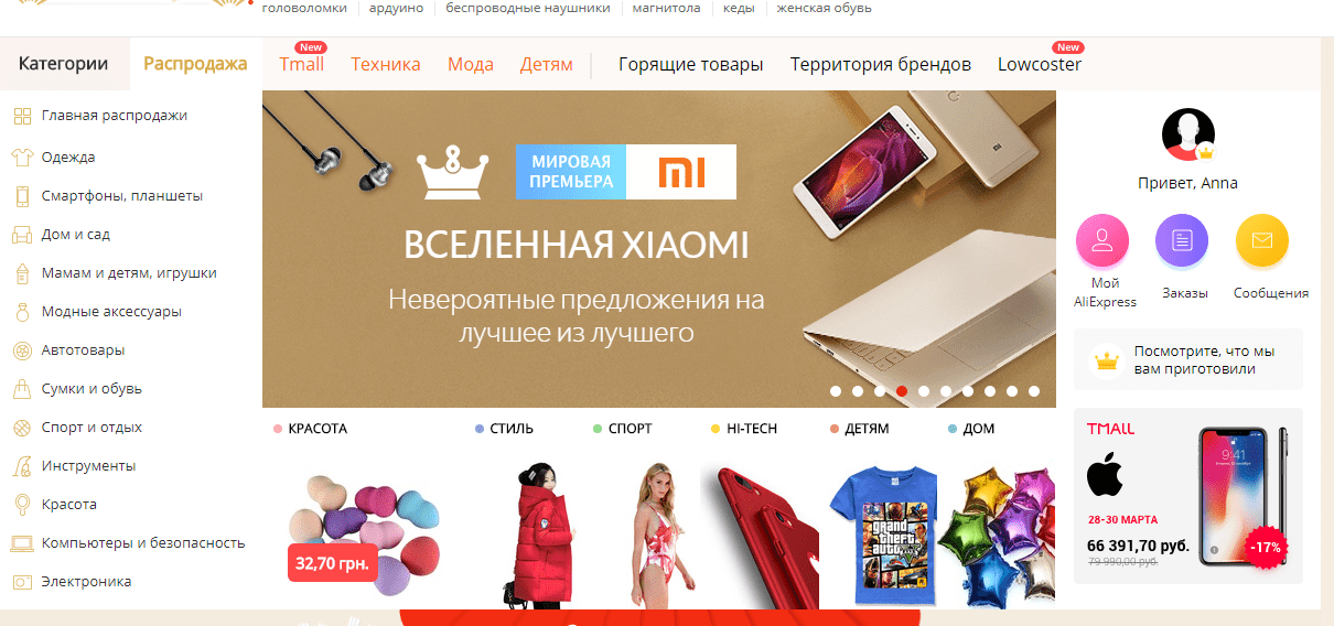 Сюда входят обувь и сумки, детская одежда, товары для дома и сада, косметика и волосы, бытовая электроника и многое другое.